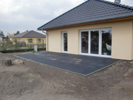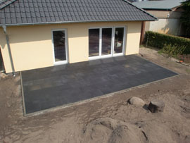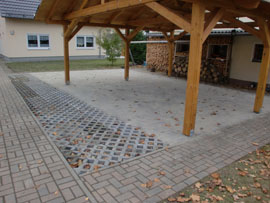 verschiedene Pflasterarbeiten auf einem Gewerbehof in Berlin
