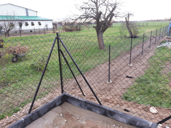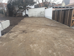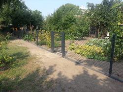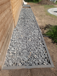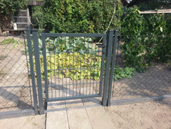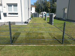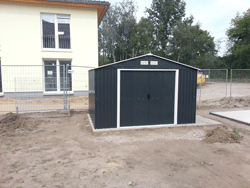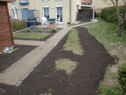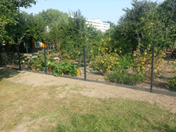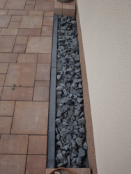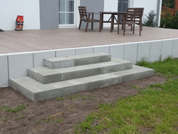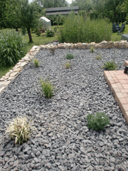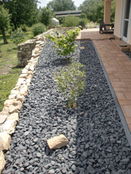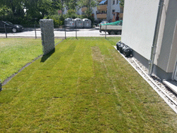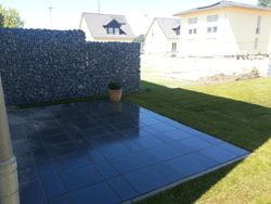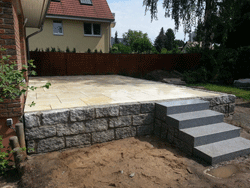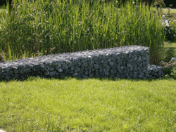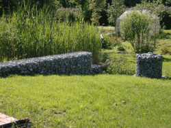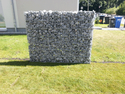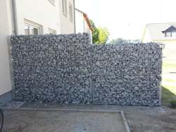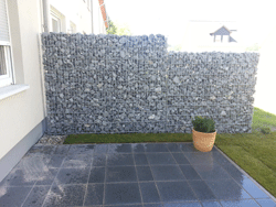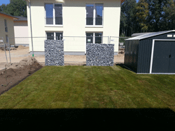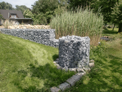 Kleiner Garten in Berlin-Hohenschönhausen mit Natursteingabionen,